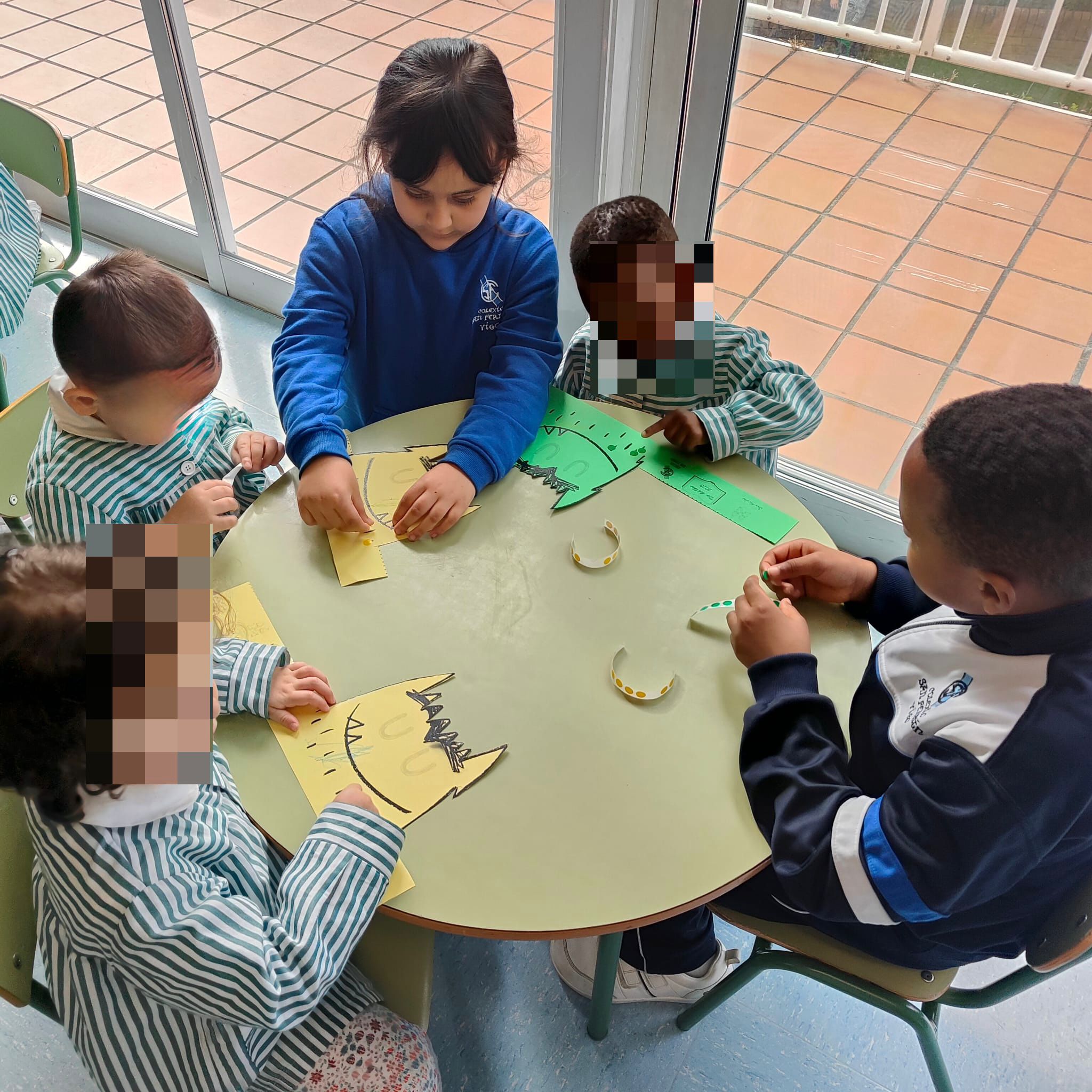 Tras a lectura, os alumnos e alumnas de Primaria colaboraron cos nenos e nenas da escola infantil na elaboración dunha coroa inspirada no conto, favorecendo a cooperación, a creatividade e o intercambio entre etapas.